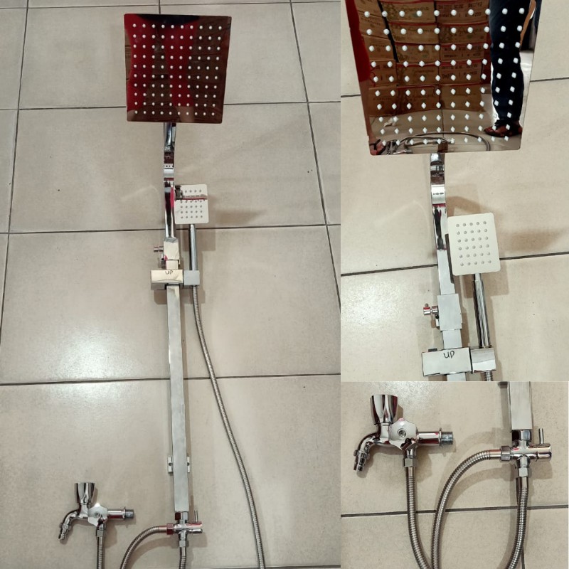 Shower tiang set petak full stainless #bahan tiang stainless #1pcs wall shower stainless dan selang shower#1pcs hand shower#1pcs tee diverter#1pcs selang flexibel 40cm#1pcs kran cabang#pemakaian bisa untuk air di