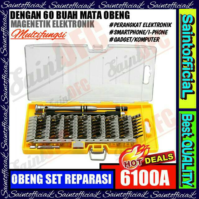 Obeng set dengan 60 buah mata obeng berbeda yang sangat berguna bagi Anda yang sering mengoprek / membongkar perangkat Smartphone, handphone atau pun gadget komputer lainnya. Tersedia berbagai jenis kepala obeng yang dapat anda sesuaikan dengan kebutuhan anda.Features60 in 1Tersedia 60 buah mata obeng dengan berbagai ukuran untuk membantu anda membongkar perangkat iPhone, Smartphone, ataupun perangkat elektronik lainnya. Semua kebutuhan obeng Anda tersedia dalam satu paket ini.Changeable TipMata obeng dapat anda ganti sesuai dengan kebutuhan anda pada gagang obeng dengan cara memutar bagian kepala obeng.MagneticObeng ini memiliki fungsi magnetik, sehingga sekrup yang di buka akan segera menempel pada mata obeng dan anda dapat menyimpan sekrup dengan aman. Proses pembukaan dan pemasangan kembali sekrup jauh lebih mudah karena sekrup akan menempel pada mata obeng dan anda hanya perlu menyesuaikan posisi dengan lubang sekrup pada peran