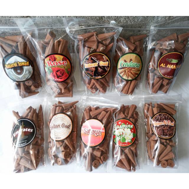 PENGIRIMAN SELURUH INDONESIAHARAP TANYAKAN STOK DULU KAKA SEBELUM CHEK OUTbukhur atau dupa ini lebih simple dan tidak ribet langsung bakar seperti rokok.Bukhur khas saudi isi 50 pcs berbentuk kerucut dengan aroma-aroma terbaik dan wangi nya tidak bikin pusing. Cocok banget di pake untuk acara2 majlis ta'lim, pengajian, acara syukuran dan bisa juga untuk pengharum ruangannama varian wangian dupa kerucut :stok ready :1. sabaya,2. hajar aswad3. oud kiswah4. emirates5. sulton oud6. ammer oud7. rose8. jas