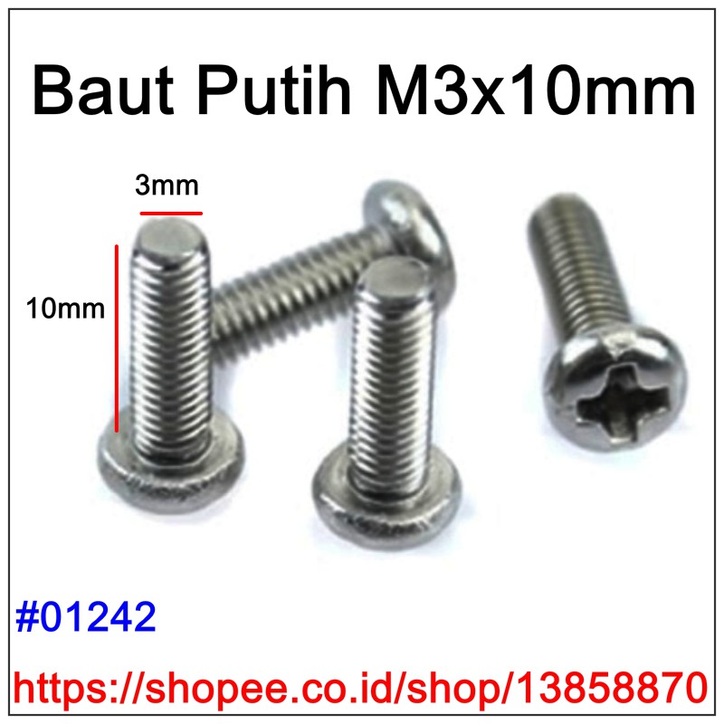 Baut M3x10mm 10pcs Sekrup Putih Baut Mur Baut Spacer PCB 3 x 10mm ScrewHarga Tertera:10 Pcs Baut Putih M3