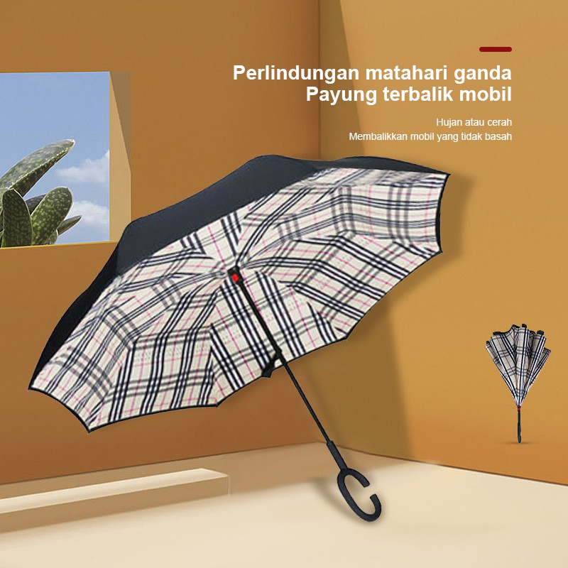 Kazbrella atau payung dengan model bukaan terbalik ini akan memudahkan anda setelah pemakaian karena air hujan pada payung tidak akan mengotori ruangan atau pun mobil anda.Kelebihan Kazbrella:- Ada dua lapisan payung sehingga rangka payung tidak terlihat.- Air hujan tidak akan mengotori ruangan atau pun mobil anda.- Terbuat dari bahan yang berkualitas.- Diameter payung +-95 cmAda tombol merah untuk membuka dan sebagai pen