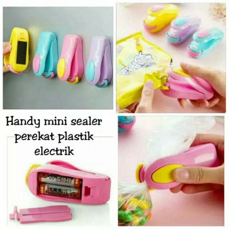 Alat ini berfungsi untuk merekatkan atau mengemas plastik yang dapat dioperasikan dengan satu gengaman tanganBisa untuk menutup rapat plastik makanan yang sudah terbuka sehingga menjadi tahan lama dan tidak masuk angin, sisa makanan yang gak habis dimakan tetap fresh dan awet. Juga dapat dipakai untuk merekatkan plastik sayuran dan buah sebelum disimpan ke kulkas supaya sayuran dan buah tidak mudah rusak.Pengganti cara mengemas plastik tradisional yang menggunakan api dan lilinDioperasikan dengan Baterai tipe AA x 2pcs (batre tidak termasuk), disarankan menggunakan batre jenis Alkaline.Alat ini dapat panas secara instant begitu dijepit dan ditekan. Jika tidak tidak ditekan alat gak bakal panas. Pakainya sangat mudah, cukup jepit alat ke plastik yang hendak direkatkan, lalu tekan alat dengan jari tangan, tekan atas dan bawah sambil geser, plastik otomatis akan merekat.Saat sedang tidak dipakai anda tidak perlu melepas batre, alat ini dilengkapi penutup pada posisi bantal pemanas, cukup tarik penutup bantal pemanas ke posisi tepat di atas bantal. Saat hendak memakai alat ini anda harus turunkan dulu penutup ini. Bagian bawah alat terdapat lapisan magnet, dapat ditempel di kulkas saat sedang tidak dipakai.Size : 10 x 3.8 x 5