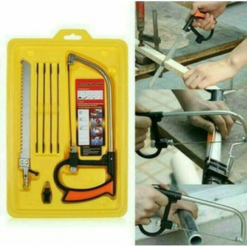Magic Saw Ori - Gergaji Magic - Gergaji Besi Kaca Kayu - Gergaji AjaibEasy InstallationPenggunaannya cukup mudah dan dapat anda pahami dengan, terutama saat memasang mata gergaji. Dilengkapi juga dengan baut sehingga mata gergaji tidak akan mudah lepas dan aman saat Anda gunakan.High Material and ErgonomicGergaji tangan ini terbuat dari baja berkualitas yang tak mudah karat, sehingga bisa tahan lama dan kat dalam memotong apapun. Bentuknya sangat ergonomis, dan pas di tangan Anda, tidak seperti gergaji tangan yang biasa Anda lihat pada umumnya.Anything CutMata gergaji bukan hanya digunakan untuk memtong kayu dan logam saja, seperti gergaji pada umumnya. Anda juga bisa menggunakan Tungsten Carbide Roller Tip untuk memotong atau membelah kaca dan keramik dengan mudah.Barang-barang yang Anda dapat dalam kotak produk:1 x Bodi Gergaji5 x Mata Gergaji pemotong logam1 x Tungsten Carbide Roller Tip pemotong kaca/keramik1 x Flat Saw Blade pemotong kayu1 x Baut PengunciMaterial SteelDimensi 24.5cm X10cmblade Length: 150-