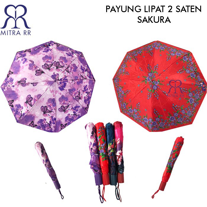 Payung Lipat 2 Saten Sakura , Payung Saten Termurah (Free Bubble Wrap)Grade : CKelebihan : Harga TerjangkauMotif : Bunga bunga cantik semua (untuk motif random karena datang dari pabrik bisa berbeda beda, tapi kualitas tetap sama)Bahan : Saten/Satin (Kain Mengkilap Terlihat Mahal)Payung dengan dimensi:-diameter payung: 93 cm- panjang payung waktu dilipat: 34 cm-panjang tiang payung bila sedang dibuka: 47cm>Barang sebelum di kirim Sudah di cek terlebih dahulu dan sudah di pastikan dalam keadaan baik >Kerusakan dalam pengiriman bukan menjadi tanggung jawab kami>Kami sudah menyediakan Free Bubble Wrap>Membeli = SetujuNOTE: PAYUNG AKAN DICEK SEBELUM DIKIRIM, TIDAK TERIMA RETUR JIKA RUSAK SELAMA PENGIRIMANNOTE !!MOHON UTK TIDAK MENGGUNAKAN BENDA TAJAM UTK MEMBUKA PAKET, KITA TIDAK MENANGGUNG RESIKO APAPUN KARNA BARANG SELALU DI CEK.(1003)Variasi : Bunga BungaBerat : 350 gram (1kg Muat 3 Pa