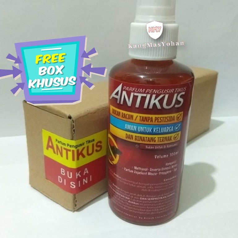KEMASAN TERBARU APRIL 2020 ANTIKUS PARFUM PENGUSIR TIKUS PALING AMPUH.KARENA PRODUK INI BERUPA CAIRAN PENGIRIMAN j&t HANYA BISA PAKAI J&T ECOStok terbatas sesuai sisa stok di shopee. Dikarenakan mahal dan susahnya mencari botol&spray kemasan produk ini. Segera order sebelum kehabisan. Dan harga sewaktu waktu naik mengikuti harga bahan baku dan botol kemasan, Parfum antikus pengusir tikus mobil motor dapur dan ruangan di rumah merupakan pewangi yang aman dan aroma nya saja tidak disukai oleh tikus. Jadi tikus akan kabur dan tidak kembali lagi jika tercium aroma antikus ini. CARA BARU MENGUSIR TIKUS Anti TIKUS AMPUH !! Antikus tidak mengandung bahan kimia/racun/pestisida sehingga aman untuk manusia. Dengan pemakaian rutin**, Formula Antikus memberikan efek trauma pada tikus dan kecoa sehingga mereka tidak akan datang kembali ke tempat yang telah disemprot. Note: tidak membuat karat pada mesin mobil/benda logam.** Pemakaian rutinCara pemakaian di mobil/motor :1. Periksa dan bersihkan sisa-sisa sarang tikus yang ada di mobil/motor, karena sisa urin/kotoran membuat tikus balik lagi, bila perlu cucikan kendaraan anda di jasa cuci ruang mesin. 2. Kocok Antikus terlebih dahulu, agar formula tercampur sempurna. 3. Semprotkan Spray Antikus ke :- spot-spot dalam kap/ruang mesin mobil/motor- kabel, part-part mobil/motor yang berpotensi jadi sarang tikus- kaki-kaki mobil/motor jalur naik tikus- area sekitar yang juga bisa berpotensi menjadi sarang atau jalur masuk tikus4. Semprotkan Antikus dengan jarak DEKAT (terlihat basah +- 4x semprot) .5. Biarkan Antikus bekerja dengan sendirinya.6. Semprotkan Antikus 3 - 6 Hari berturut-turut untuk awal, selanjutnya gunakan 1 minggu sekali untuk pencegahan. Cara pemakaian di Rumah/Dapur/resto/kantor dll :1. Cari spot sarang tikus, biasanya terdapat bekas kotoran dan urin tikus/kecoa. 2. Bongkar dan bersihkan spot sarang tersebut sebersih mungkin. 3. Cari jalur/pintu masuk tikus, biasanya berbentuk lubang atau sela-sela pintu, kabel, lubang angin2, ada kemungkinan terdapat beberapa jalur masuk nya. Tutup lubang (buatan tikus) bila perlu. 4. Kocok Antikus agar formula tercampur sempurna5. Semprotkan Antikus di area lubang/jalur masuk tikus, bertujuan untuk menghalau tikus masuk. 6. Semprotkan Antikus di bekas sarang tikus yang sudah dibersihkan sebelumnya. 7. Semprotkan Antikus secara dekat dengan benda (basah - +4x semprot) dinding, lantai, area sekitar jalur masuk tadi. 8. Semprotkan Antikus 3 - 6 hari berturut-turut untuk awal, selanjutnya 1 minggu sekali untuk pencegahan. Anjuran: - Untuk mobil yang terparkir diluar ruangan/Car port, disemprot lebih merata (potensi kena angin) agar mencapai hasil maksimal. - Harap semprot dalam jarak dekat agar tidak tersebar oleh angin. - Digunakan disore hari karena Tikus aktif dimalam h