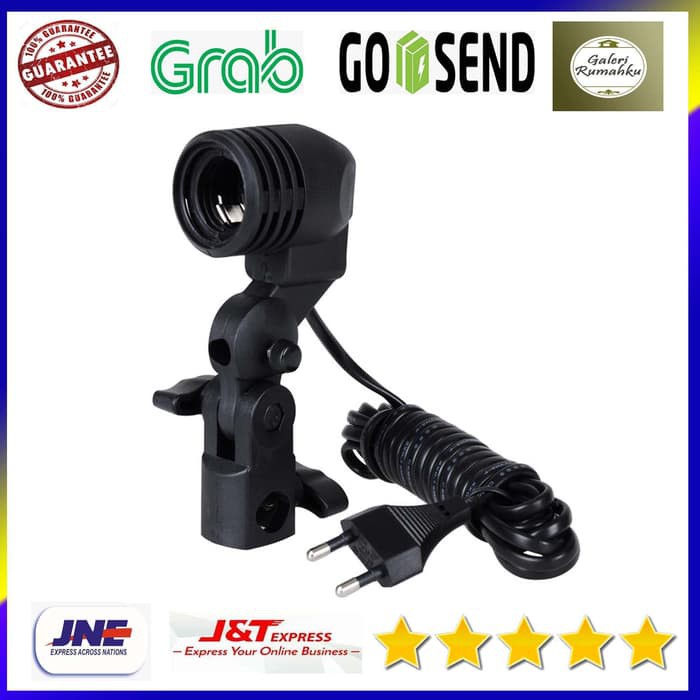 YAM Lamp Holder Single Socket E27 dengan Dudukan Payung - HQ-DZ001Dengan lamp holder ini Anda bisa menggunakan lampu - lampu LED rumahan untuk digunakan sebagai pencahayaan saat sesi foto studio. Kepala holder yang fleksibel membuat Anda bisa memposisikan arah lampu sesuai dengan kondisi. Anda bisa memasang payung reflector di slot yang tersedia untuk mendapatkan cahaya yang lebih menyebar. Dengan lamp holder ini Anda bisa menggunakan lampu - lampu LED biasa sebagai pencahayaan tambahan untuk sesi foto Anda. Penggunaan socket lampu E27 membuatnya kompatibel untuk hampir semua jenis lampu yang ada di pasaran. Kepala lampu yang fleksibel membuat Anda bisa mengatur arah pencahayaan di lamp holder ini sehingga bisa disesuaikan dengan kondisinya. Anda bisa menggunakan payung reflektor di lamp holder ini dengan memasangnya di slot yang tersedia. Dengan menggunakan payung reflektor Anda bisa mendapatkan cahaya yang lebih merata dan tersebar sehingga cocok untuk mengisi background yang kosong di foto Anda. Penggunaan material plastik berkualitas tinggi membuat lamp holder ini memiliki daya tahan yang kuat sehingga tidak mudah rusak saat digunakan. Lamp holder ini bisa dipasang dengan mudah di stand - stand standar yang biasa digunakan untuk memasang pencahayaan fotografi. Barang-barang yang anda dapat dalam kotak produk:1 x Lamp Holder Single Socke
