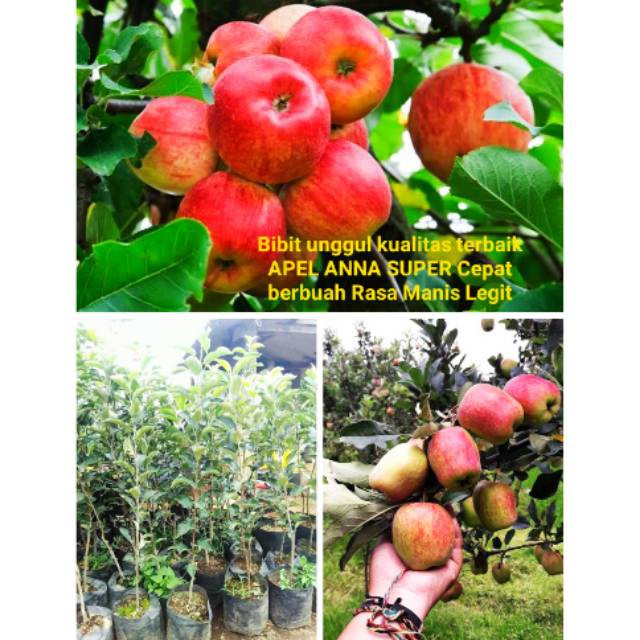 bibit apel annaukuran 40-50cmhasil okulasimelayani ecer maupun grosirApel Anna (Malus domestica) merupakan salah satu jenis buah apel yang sampai saat ini menjadi primadona di Kota Batu. Jika matang bewarna merah rata, menjadikan buah ini sering dikatakan mirip dengan apel import. Jika baru dipetik, Apel ini memiliki rasa lebih asam daripada apel malang lai