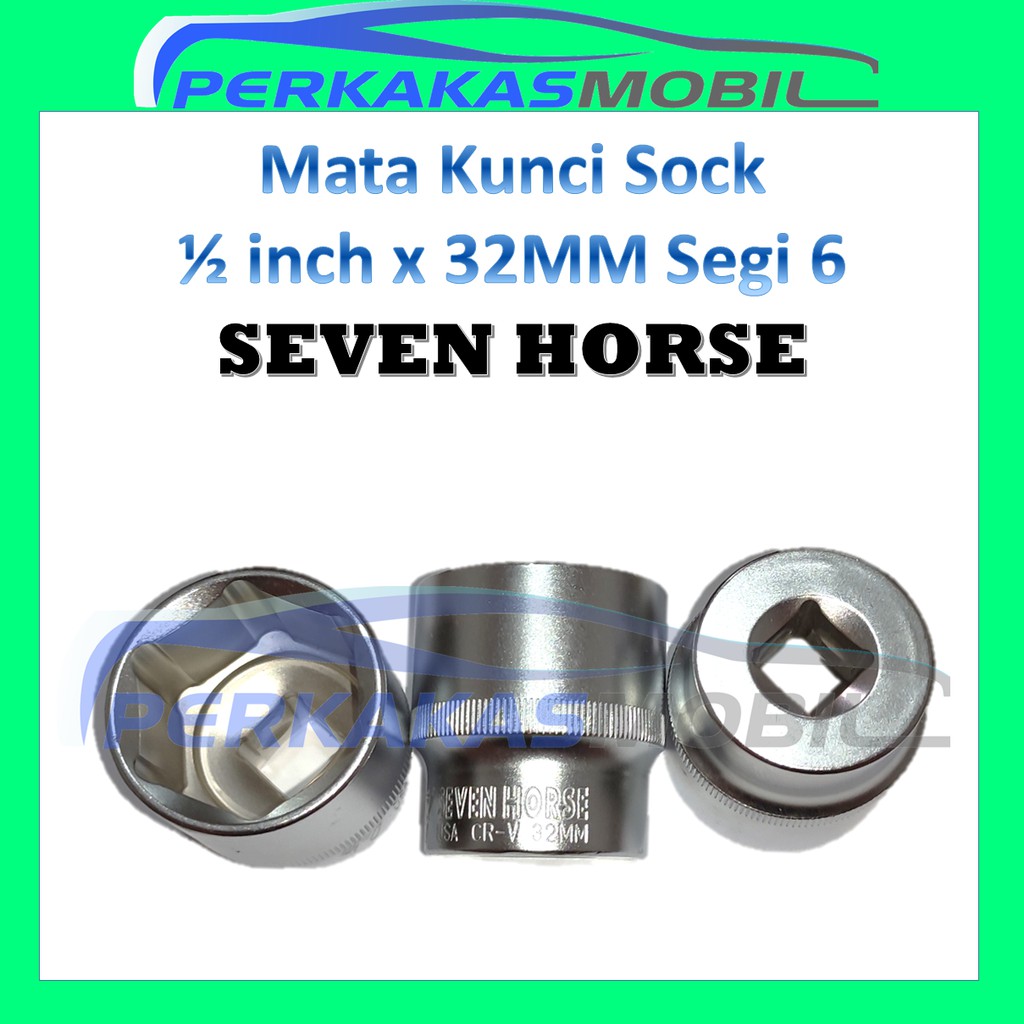 Anak Mata Kunci Sock Shock Shok Sok Socket SEVEN HORSE 1/2" 1/2 inchi x 32mm 32 mm CRV PT Segi 6 PT 6PT PT6 standar ANSIDeskripsi Produk•fungsi kunci sock pada dasarnya adalah sama seperti halnya kunci-kunci lainnya, yaitu untuk melepas atau memasang kepala baut dan mur dengan momen kekencangan tertentu.•Berbentuk silinder dan terbuat dari logam paduan Chrome Vanadium dan dilapisi dengan nikel.•Bentuk kunci ini sangat unik, karena pada satu ujung berbentuk segi 4 sementara pada ujung lainnya memiliki bentuk heksagonal ( segi 6 ). •Terdapat variasi ukuran dari 8mm sampai