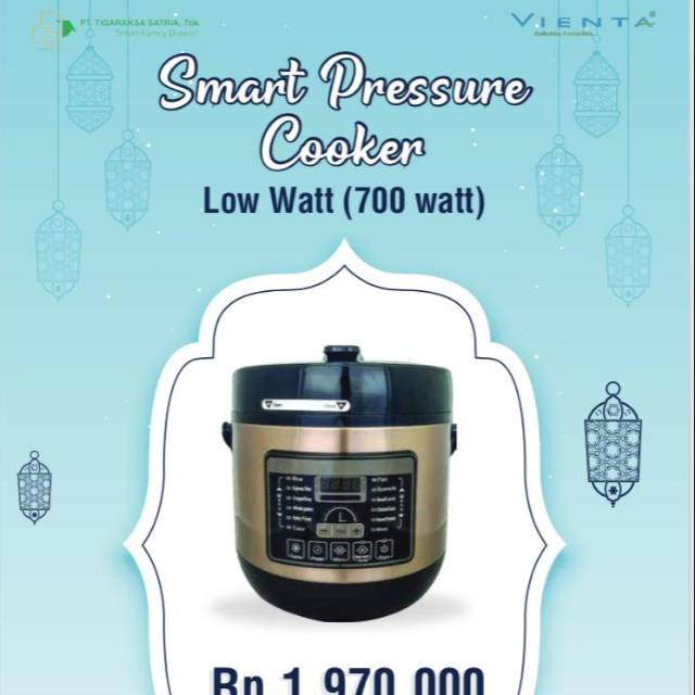 Smart pressure cooker dengan watt yang lebih rendah sehingga lebih hemat listrik dan bisa digunakan di rumah dengan daya 90