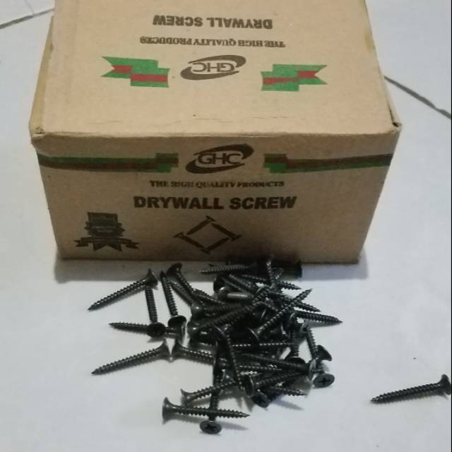 Skrup gipsum ukuran panjang 3 cm Hitam 1 dus kecil isi _+ 650 pcs Berat 1 kg Jual per dus k